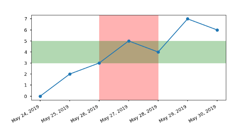 ax.axhspan(3, 5, color='green', alpha=0.3)